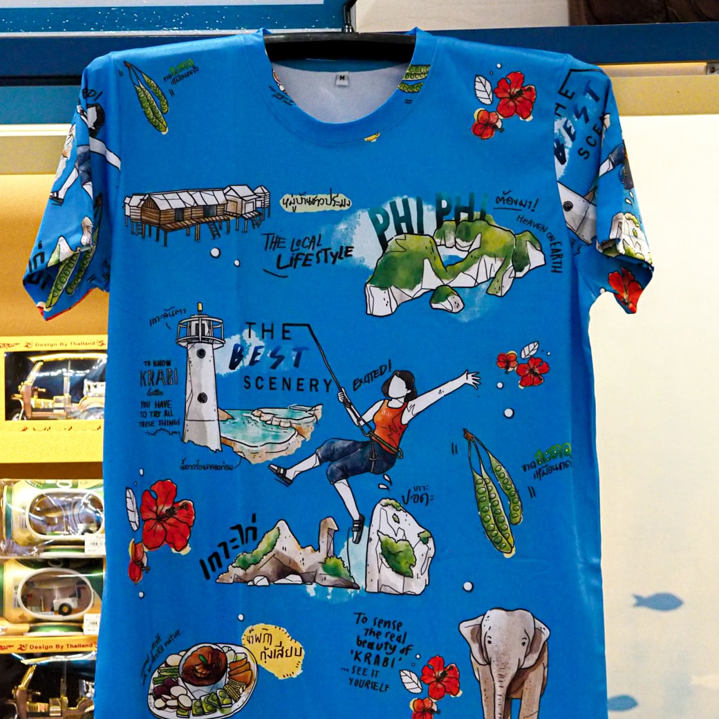 เสื้อยืดพิมพ์ลาย กระบี่ คอกลม ผ้าโพลีเอสเตอร์100% สีน้ำเงิน